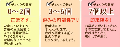 以上チェック項目で該当するものが多ければ多いほどO脚度は高いと思われます。